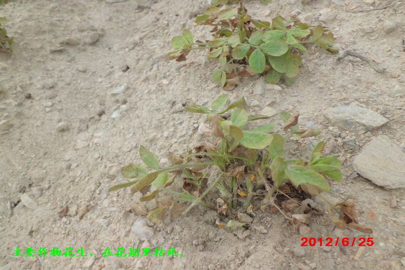 该农场地处皖东丘陵地区,位于江淮分水岭之脊,农地大多分布在山坡丘岗之上,土壤沙石含量高、保水肥性差,近年来恶劣气候频仍、旱魔徘徊不去。当前不断发展的旱情,致使上游大多塘坝干涸、农田龟裂,沉重打击了农业生产,农场职工春季种植的玉米、花生、甜叶菊、山芋、籽瓜等作物,虽然采取了地膜覆盖、带水移栽、拖水保苗等农艺措施,但面对持续干旱,也只是杯水车薪、难以抗衡,在地作物普遍生长发育不良,大多枯萎或是僵死,正在遭受灭顶之灾。