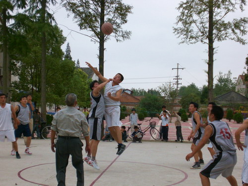 9月30日,大圹圩农场职工休闲广场上热闹非凡,由场工会组织的迎“国庆”农场第十届“丰收杯”篮球赛正在这里热火朝天的举行。