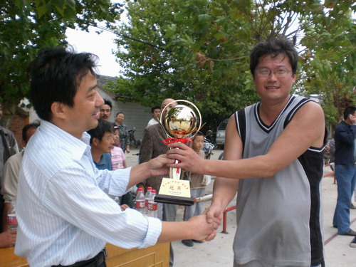 为了营造喜庆和谐的节日气氛,丰富和活跃农场和社区职工群众的精神文化生活,每逢重大节日,大圹圩农场工会都要组织开展一些健康向上、职工群众喜闻乐见的文体娱乐活动。“丰收杯”篮球赛是农场在每年国庆节期间安排的主打活动项目。本次篮球赛以大圹三个社区工会组织为单位组成代表队参赛。经过激烈的角逐,最终大圹第三社区代表队捧送了本届“丰收杯”篮球赛的流动冠军杯,第二社区代表夺得第二名,第三名是第一社区代表队。场工会主席杨朝幸为冠军队颁发了奖杯。
