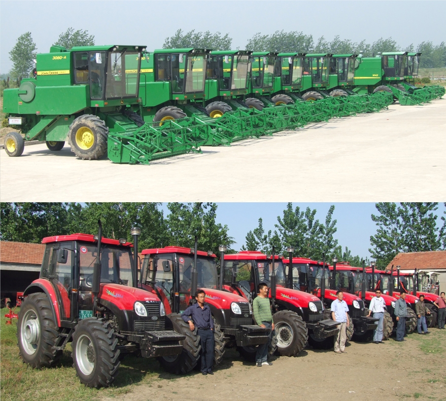 更新大马力农业机械,是龙亢农场推进现代农业标准化示范场建设的重要组成部分,也是农场种田大户们的迫切愿望。随着龙亢农场农业生产水平的逐年提高,土地精耕细作的标准也越来越高,原来日趋老化的机械力量越来越不适应现代标准化农业种植的需要。为了推进农机更新换代、更好地适应现代农业高产和超高产的农艺措施需要,龙亢农场利用国家财政补贴资金、项目专用资金,农场农机更新扶持资金,以及职工自筹资金相结合的办法筹集农机更新资金。农场专门成立农机服务站,对全场有购机意愿的家庭农场,通过登记摸底、审核资料、公开公示等严谨程序,把有限的政策资金真正用到农机更新的刀刃上,使那些急于更新和添置大型农机具的家庭农场和种田大户,打心眼里满意。目前,龙亢农场农业机械化程度已超过96%,各类大型农机具在农场现代农业建设中正大显身手,奉献佳绩。