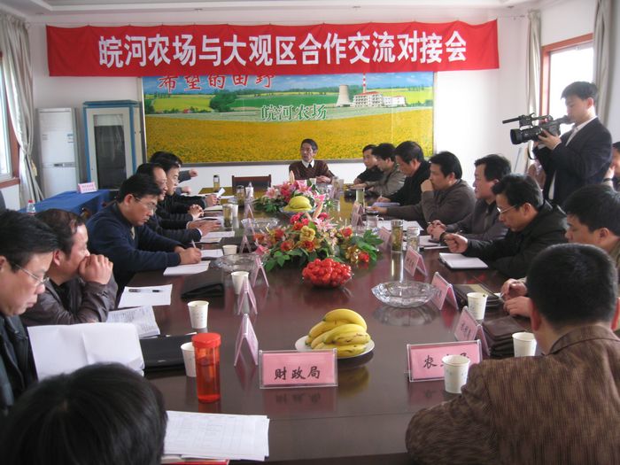 “皖江城市带承接产业转移为区场合作发展带来了新机遇!”“区场再度携手有了天时、地利和人和,合作大有可为……”3月17日下午,安徽省皖河农场与大观区合作交流对接会正在农场东楼会议室里进行着,与会人员热议场区合作共谋发展的新思路,新举措,会议室里充满了“议合作、商共建、谋发展”的浓厚氛围。安徽省安庆市大观区区长刘文俊兴奋地说:“这次会议是场区合作正式启动的标志性会议,合作发展前景广阔,搞产业承接转移我们可以先行先试,边干边总结!”