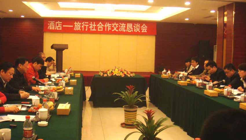 随着世博会及四体会的即将召开,加强酒店——旅行社的合作交流,是酒店创新经营方式的又一新途径。3月4日下午,合肥市旅游局、合肥市旅游协会、合肥市各知名旅行社及新长城酒店管理公司各酒店在安徽农垦新长城大酒店二楼会议室,首度召开了“酒店——旅行社合作交流恳谈会”,会议气氛友好热烈,各旅行社总经理踊跃发言,就旅游团队价格、团队餐及服务等问题各抒己见,并对目前合作中存在的问题提出了良好的建议。蔡荣生总经理代表酒店方,表示了合作的诚意,并对相关问题作了解答。会上,旅游局与旅游协会领导分别作了发言,对新长城大酒店首度举办“酒店—旅行社合作交流恳谈会”表示赞赏,充分肯定了新长城的品牌建设,提出要关注新长城,走进新长城,融入新长城,并将继续搭好双方合作的平台,服务于企业。