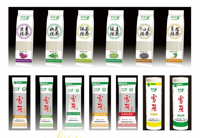 雪雁牌系列挂面选用雁湖面粉为原料,采用先进的生产工艺,以其特有的"筋力高、韧度强、色泽白、柔滑光、口感细腻香、久煮不浑汤"等显著特点,可满足各层次消费者的需求。