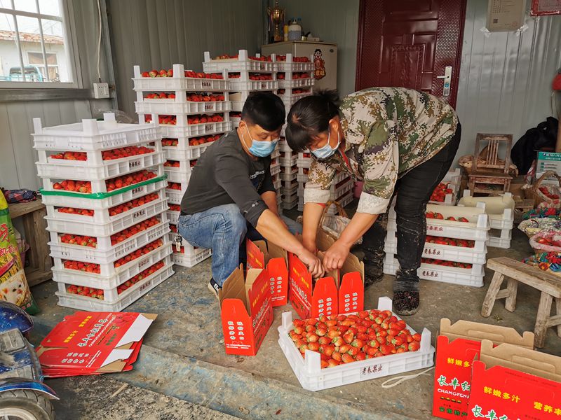 去冬今春对于纪延泽这样的草莓种植户来说一个坎儿。去年碰上暖冬,12月初草莓就开始成熟采摘,比以往早了20多天。“草莓刚上市三、四十块钱一斤,还没来得及高兴,元月底就碰到了新冠疫情,价格一下子跌到一斤五块钱,最低时只卖到一块钱,草莓卖出了稻草价!”宋彩霞提到这个话题,差点泪目。