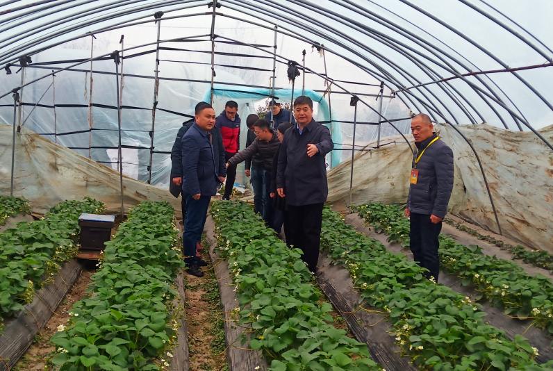 王良贵一行实地走访了安徽农垦扶贫产业园,详细了解草莓园生产、管理等情况,随行专家对冬季大棚草莓温湿度控制、花果管理、病虫害防治等方面给予技术指导。