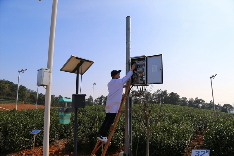 为应对近期低温阴雨天气,预防气温骤降给春茶生产带来的不利影响,3月2日,茶业集团所属茶场公司加紧对名优茶园实施防霜冻措施,全力保障春茶生产增产增收。在敬亭山锦绣坡,22台防霜风扇全部开启;在祠山岗黄金芽基地,工作人员正在为茶园加盖防霜网。(张志超)