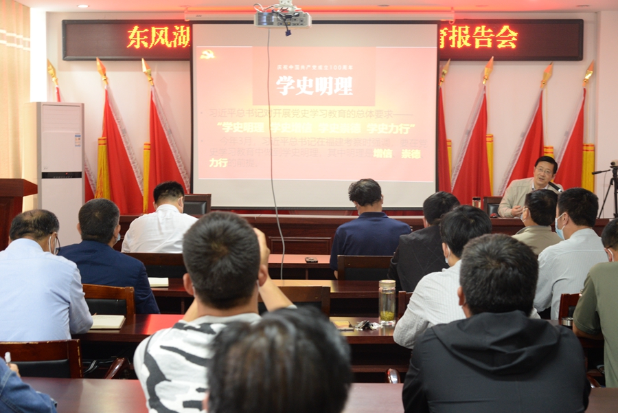为深入推进党史学习教育,促进农场公司党员干部深刻感悟中国共产党始终不渝为人民的初心宗旨,519日下午,安徽农垦集团东风湖农场公司党委举办安徽农垦发展史专题学习教育报告会,让公司全体党员在聆听农垦“艰苦奋斗、勇于开拓”的精神中零距离感悟初心使命、汲取奋进力量。