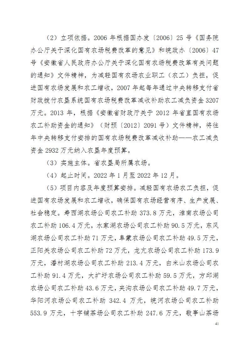 安徽农垦集团:2022年安徽省农垦事业管理局部门预算