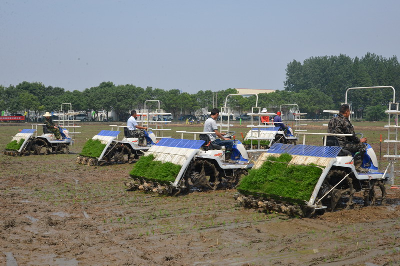 614,安徽农林水工会和安徽农垦集团工会联合在大圹圩农场举办了水稻机插秧技能比武大赛,来自安徽农垦系统的10名机插秧能手参赛。(安徽日报201561502版,通讯员李炳旺 夏庆芳摄)