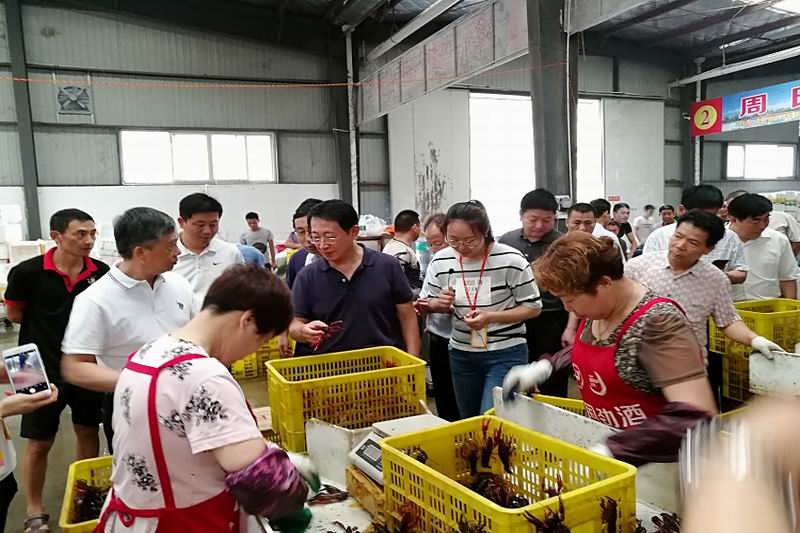 考察团一行实地参观了湖北交投莱克现代农业科技有限公司及种苗繁育基地、潜江小龙虾交易市场、运粮湖农场稻虾种养现场。随后,在运粮湖农场举行稻虾种养经验交流座谈会。考察团成员结合各场实际情况,对遇到或可能出现的有关问题,与湖北农垦及运粮湖农场领导专家进行交流探讨,进一步加深了对稻虾种养模式、技术、成效的认识,感受到了小龙虾大产业的活力,增强了发展稻虾产业的信心。