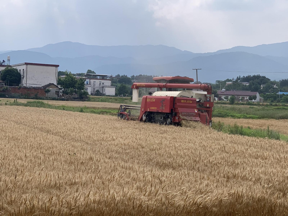 金色六月,麦浪飘香。在安徽农垦垦丰农业科技有限公司(安徽农垦与长丰县乡村振兴投资公司合作成立的企业)经营的大路村小麦田里,多台收割机正在忙碌而有序地作业,随着饱满的麦粒从收割机喷涌而出,卸入运粮车,不到半个小时,眼前一块30亩麦田就实现颗粒归仓。
