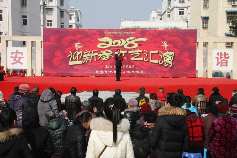 26下午,寿西湖农场举办学习宣传贯彻党的十九大精神迎新春文艺汇演,喜迎农历新年,丰富文化生活,用十九大精神凝聚干群正能量和战斗力。农场领导与基层干部职工一道现场观看了演出。