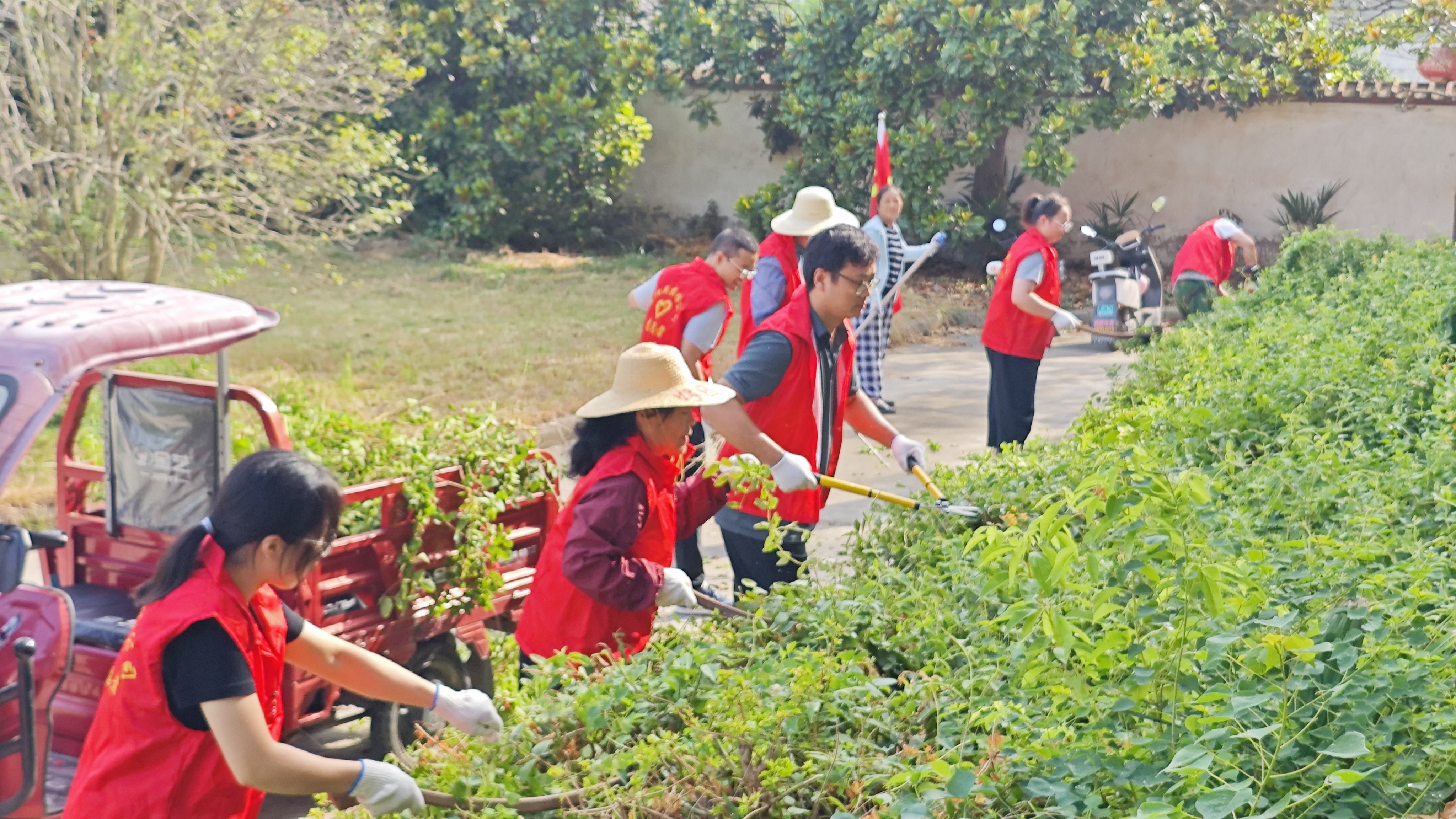 党员、团员干部组成志愿者开展义务劳动,红马甲成为美丽农场建设的一道风景线。潘村湖农场公司组织党员团员志愿者清洁办公区,农业分公司人员清除田间杂草、疏浚沟渠,粮库和农机大院也进行了全面清理;正阳关农场公司发动16名管理人员组成志愿者,对办公区开展环境整治义务劳动。