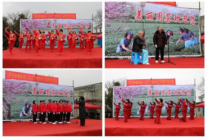 38上午,伴着蒙蒙春雨,敬亭山茶场在周王分场社区举办庆祝三八妇女节广场舞文艺汇演,副场长吴育春到场祝贺并向全场女性朋友致以节日祝福和问候。