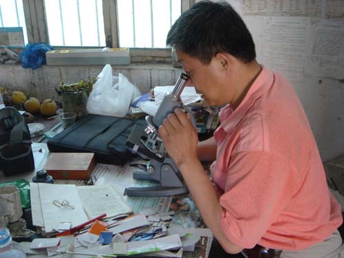 为了防止病情的蔓延,影响果树生长,我场特邀请北农大教授来我场进行病菌(病毒)分离培养,5月17日,北农大教授一行三人在我场梨园内进行了接种试验,以确定病菌种类,找出防治病害的有效药物。