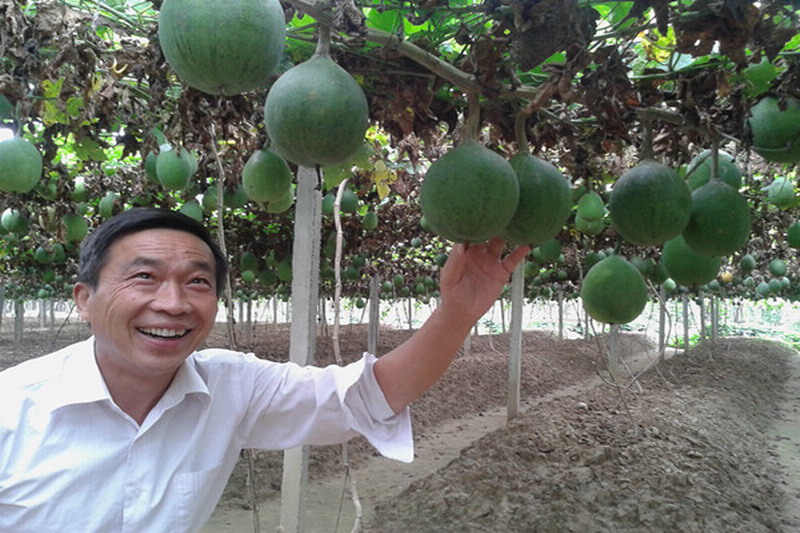 安徽经济新闻网1015日讯:近年来,安徽农垦华阳河农场大力发展瓜蒌等高效农业成效显著,并积极推广滴灌等先进适用技术,逐渐形成了以高效农业为主导的产业,为农业增效、职工增收提供了保证。图为职工种植户看着自家地里长势良好的瓜蒌眉开眼笑。(程来保摄)