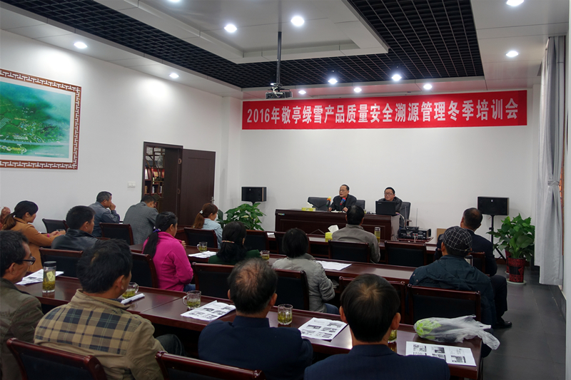 11182016敬亭绿雪产品溯源管理冬季培训会举办,皖垦茶业集团及敬亭绿雪公司、敬亭山茶场质量追溯有关负责人,山北分场分管领导和一线职工50多人参加冬训。