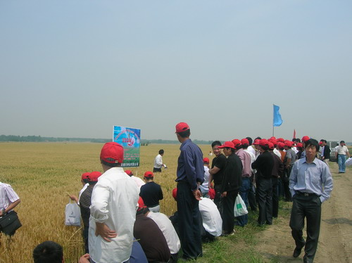 5月20日上午,淮北市柳丰种业集团一行约300人,乘坐大大小小30辆车,莅临马厂湖农场考察小麦长势,这是该场种子公司接待的规模最大的一个观摩团。 5月中下旬以来,到马厂湖种子公司参观的客户骆驿不绝,“马厂湖农场小麦长势和纯度上了一大台阶”,这是参观者讲的最多一句话。