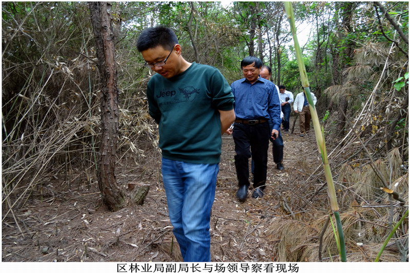 56,宣城市、宣州区两级林业局一行8人到敬亭山茶场检查森林抚育项目,在场领导陈雪松陪同下,深入抚育后的小班内部仔细观察并给予评价,认为该项目严格按设计要求作业,项目进展顺利,抚育效果良好。(施宁馨)