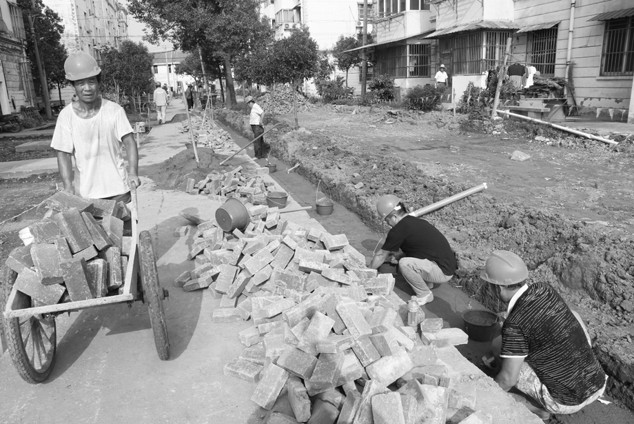 7月31日,安徽农垦华阳河农场小区物业改造工程正在紧张实施。连日来,该农场15个居民小区、7867户居民家庭物业改造全面展开,修建停车位,房屋、下水道维修,道路、绿化带、雨污分离管网等综合治理,提升小区基础设施水平。本报通讯员 李龙 摄 (安徽日报  8月14日 2版)