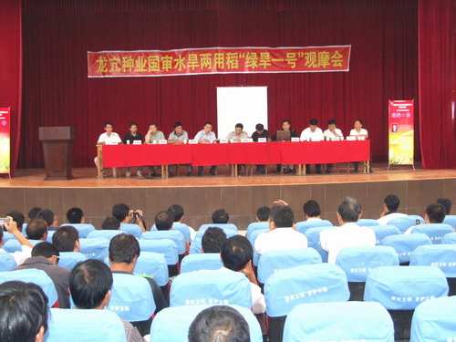 观摩会上,“绿旱一号”水稻育种人朱启升及各位水稻专家分别介绍了“绿旱一号”高产栽培技术、在江淮分水岭地区的节水高效栽培技术研究情况、寿西湖农场抗涝栽培生产经验、龙亢农场大面积机械化高产栽培经验、栽培注意事项等情况,种业部门领导介绍了“绿旱一号”的生产及销售情况,并展望了良好的销售前景。