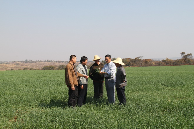 74,皖津公司总经理韩大鸣带领副总经理何宏顺及温亚尼农场管理技术人员,深入田间实地查看了小麦苗情长势、追肥化除等情况。由于第一次喷灌及追肥打下了良好基础,温亚尼农场所有地块均出苗苗齐,长势很好,特别是早喷地块苗壮势旺,已开始拔节孕穗,显现出丰产特征,化除效果也较明显,大部分田间杂苗均已萎蔫。就下一步工作,韩大鸣指出,要进一步做好灌溉补水和追肥化除工作,确保小麦生长用水和田间纯度;要认真做好小麦田间生长记录,针对不同地块、不同苗情制定不同的田管方案,为指导小麦生产提供理论基础依据。(杨杰)
