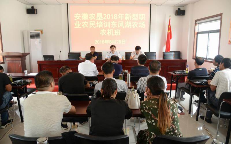828,安徽农垦2018年新型职业农工培训东风湖农场农机班开办,农垦集团人力资源部、寿西湖技校、东风湖农场有关负责人作开班动员,全场50名职工学员参训。