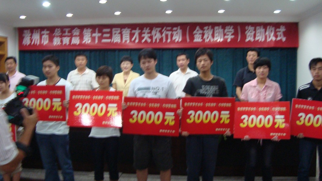 根据滁州市总工会、教育局关于开展2010年育才关怀(金秋助学)活动的部署和要求,白米山农场工会根据资助对象、条件和范围,对今年考上大专院校和在读大专院校的困难职工子女情况进行了调查摸底,经滁州市总工会入户核实、研究审批、网络公示,白米山农场13名困难职工子女被纳入育才关怀(金秋助学)活动资助范围,最高获3000元资助。