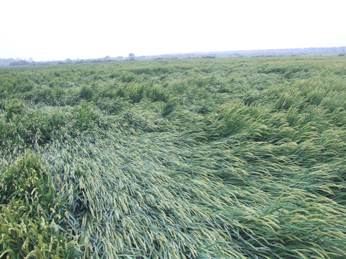 9月22日—23日,华阳河农场遭受突然而来的大风降温天气侵袭。强风自22日凌晨1时持续到23日13时,风力7-8级,日平均气温由21日的29.9度下降到23日的17.3度,温差达到12.6度。由于天气陡变,强风和大幅降温,引发棉花叶片枯萎和蕾铃脱落,处于成熟期的水稻出现倒伏,其它农作物也不同程度地受到损害。据初步统计,此次灾害将造成农作物歉收1-2成。