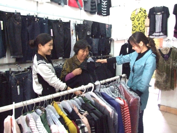 图:孝女在母亲节这天为母亲选购服装