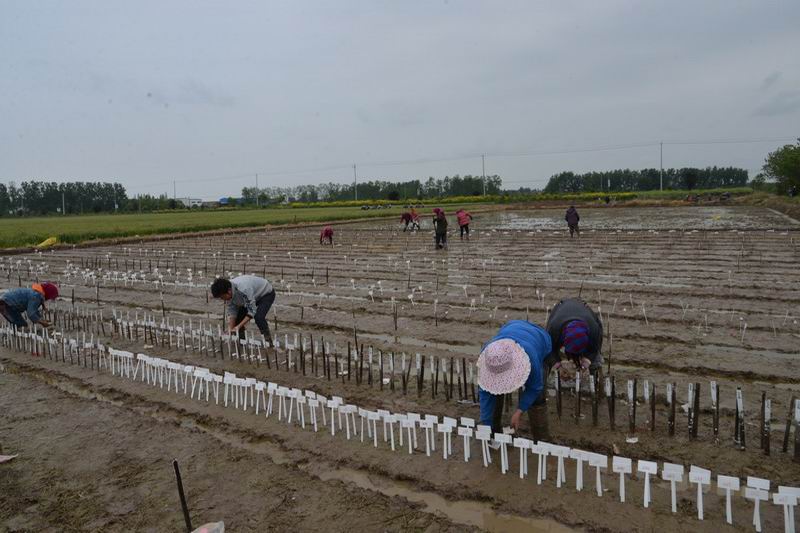 513,皖垦种业皖东农科所组织人力在整理好的苗床秧板上播种水稻亲本材料、各世代材料以及花培材料,拉开了试验田夏种序幕。