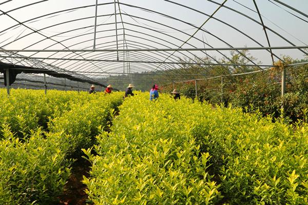 祠山岗茶场黄金芽近日开园秋采。春茶过后,该场采取茶园喷灌、太阳能杀虫灯、大棚遮阳网、测土配方施肥等先进农业技术,确保了黄金芽基地茶树始终保持良好生长状态,目前长势喜人,预计产量和品质均好于往年。(陈文)