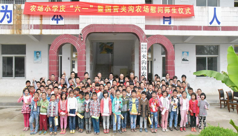 528,夹沟农场党委副书记、关工委主任夏长信带队到小学慰问,送去学习用品,并祝小朋友们六一节快乐。