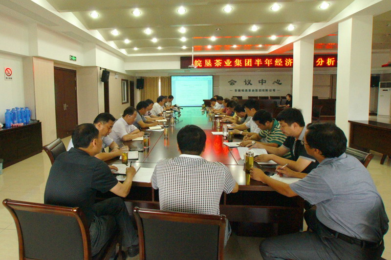 715,皖垦茶业集团召开半年经济形势分析会,党工委书记张国祥主持会议,总经理邱升水作主题发言,董事长凌军作会议总结。领导班子成员、财务总监以及各部室、茶场、专业公司、龙头企业负责人参加会议。
