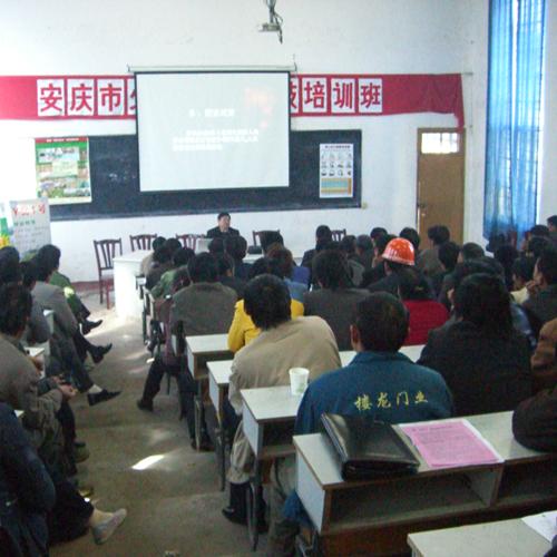 4月4日一大早,在皖河农场中学科技教室里坐满了来参加“农技培训班”的农工,大家脸上流露着兴奋和热切,有的人早早就准备好了笔和纸,随时准备做“课堂笔记”。据悉,此次农技培训班是在安庆市民委牵头下,由市农委组织专家、教授来场举办,采用多媒体授课的形式,主要向农民朋友讲解“农业畜牧、蔬菜和市场营销”的科技知识和经验技巧。台上专家讲得是龙飞凤舞,台下“学生”听得是津津有味。