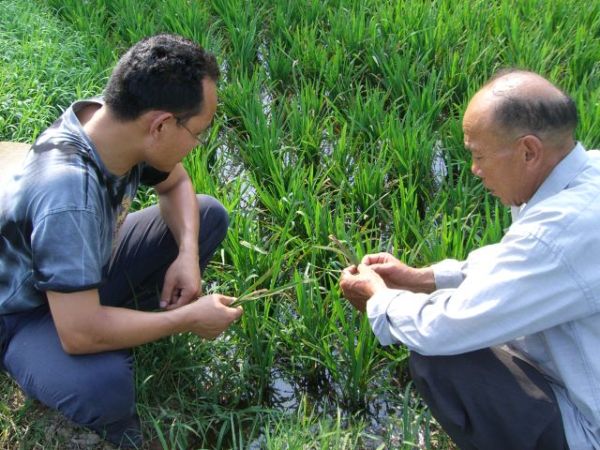 7月25日对于植保站的年轻人来说是最繁忙的一天,上午8点,程大强专门从安庆市请来植保专家向农户面授机宜,指导稻纵卷叶螟的防治秘诀。当天野外温度达到40℃,中午1点30分左右,仍有不少农户拽着程大强们不松手,拉着他们到稻田里察看虫情。下午4点左右,他又接到来自杨树分场种粮大户李泽光的求援电话,于是,程大强又开着摩托车一溜烟赶到外李泽光的田里“诊断”病虫害,当即为他开出了药方,并叮嘱他按时、按剂量配药和喷施。直到天黑,程大强才一身风尘的赶回家中。