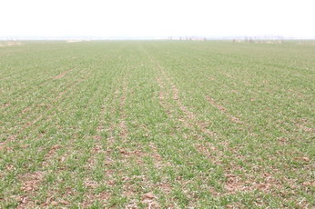 2009年小麦秋种期和苗期的气候因素不利于小麦正常生长,一是播种期干旱加大了小麦适时出苗难度、二是强冷空气影响早小麦越冬前利用有效积温不够、生长不足、小麦叶龄较常年减少1.5片左右。面对秋种期间不利天气,东风湖农场紧急动员职工开展抗旱保苗、促苗行动,至11月2日全场二次促苗喷灌工作结束、喷灌后充足的土壤墒情为小麦越冬前生长创造了良好的水肥条件。据近日田间调查,全场90%地块苗情已达到5叶一心。田间群体在65万/亩左右。结合苗情还应继续加强麦田冬春期管理。一、低洼田的降水降湿以护根透气,二、因苗适量追施返青肥以促孽成穗,三、足施拔节肥以增加粒数和粒重,同时加强测报工作,及时防治田间病虫草害,通过加强管理力争今年午季小麦实现持续丰产丰收。
