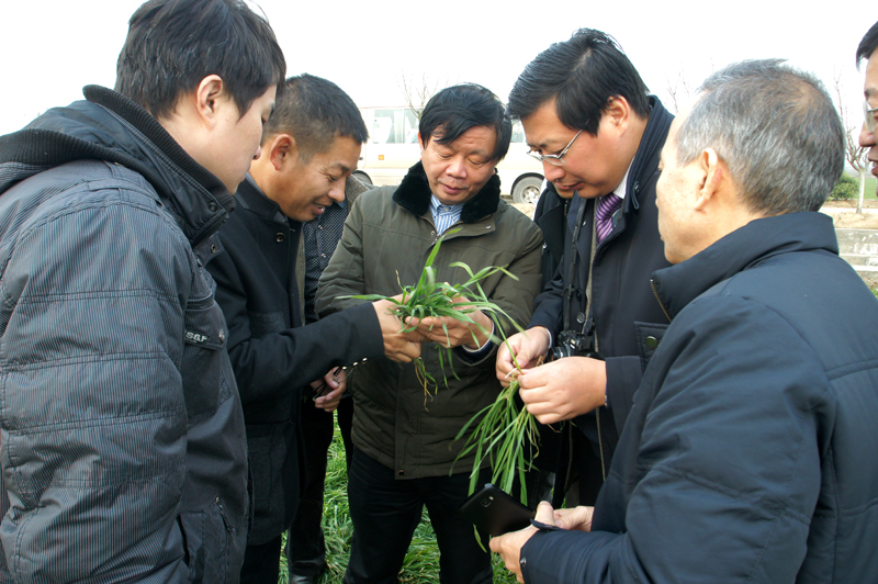 1221,安徽农大黄正来教授、省农科院汪建来研究员、蚌埠市农委李勇主任一行组成专家组,走进龙亢农场麦田观摩了小麦苗情和田间长势,副场长王永玖等陪同。