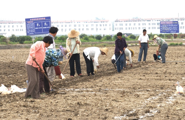 该中心夏种期间,中国科学院、中国农大、安徽省农科院、安徽农业大学、皖垦种业和龙亢农场的30多名资深农业专家联合组成了科技夏种工作组,制定了夏种精细化操作规程。连日来,专家们在充分调研当地农情的基础上,组织农技人员有序开展夏种工作,严格按照精细化农艺技术要求标准化定植播种各种农作物。为确保农业科研试验取得成效,专家们还综合运用先进的农业装备和科技手段优化作物所需的生长环境。上图为:精细化点播大豆试验品种(李峰)