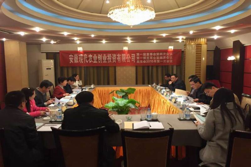 近日,安徽现代农业创业投资有限公司2016年第一次股东大会暨第一届董事会第四次会议在合肥举行,省农垦集团总会计师、创投公司董事长高有荣主持并讲话。创投公司各股东单位代表和董事、监事、经营班子参加会议。