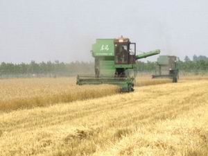 6月1日下午,随着七分场两台东风收割机缓缓驶入 金色麦海,大圹圩农场午收夏种战役正式拉开序 幕。