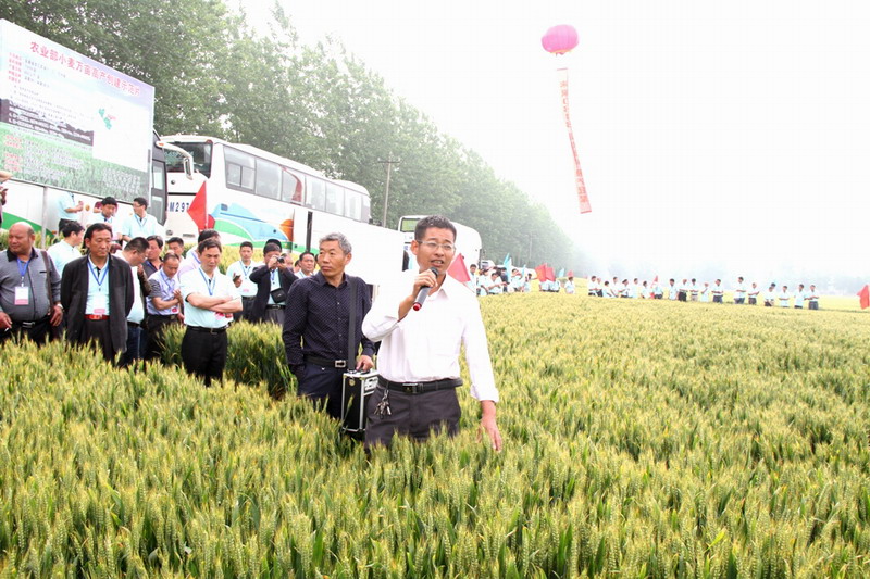 518,黄淮地区各省市县农业科研院校的小麦专家、农业部门负责人、种子经销商、种植大户等360余人云集安徽农垦龙亢农场,现场观摩小麦良种生产。副场长王永玖向各地来宾介绍了农场小麦新品种特性和高产栽培技术模式。(李峰)