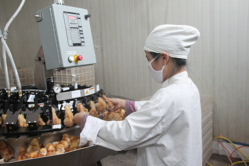 断喙器又名切嘴机、切嘴器。此次引进的红外线段喙器,目前全国仅有少数较大家禽企业运用。红外线断喙在孵化厅进行,与性别鉴定和免疫注射同步完成,通过精确微调,每小时可处理3500-4000只苗鸡,自动化率达100%,避免了员工与苗鸡的接触,确保了生物安全性,使之成为安禽公司实现饲养全程自动化控制后又一新亮点,安禽牌苗鸡步入了全国同行业一线品牌,将带动农场蛋鸡产业链进入更加良性的安徽农垦集团模式。