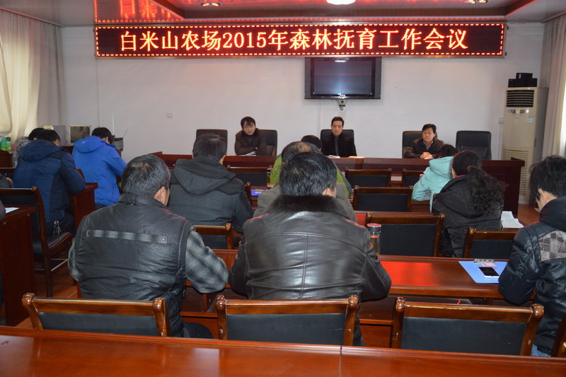 128,安徽白米山农场召开专题会议,提早部署2015年森林抚育工作。场长邱达、副场长王仕超、总工程师周尤马及相关科室、各分场负责人参会,合肥林业学院实习大学生列席。
