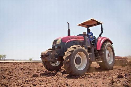 津巴布韦发展农业的自然条件较好,但农业生产方式落后,技术和管理也十分欠缺,不得不依靠进口粮食和援助解决吃饭问题。津方邀请有实力的中国农业企业赴津开展农业合作。津方出土地,中方出资金、技术和管理,双方的务实合作,在土地中结出果实。图为在津巴布韦奇诺伊的温亚尼农场上,皖津公司一名员工开着中国产东方红拖拉机犁地。 (新华社记者许林贵摄