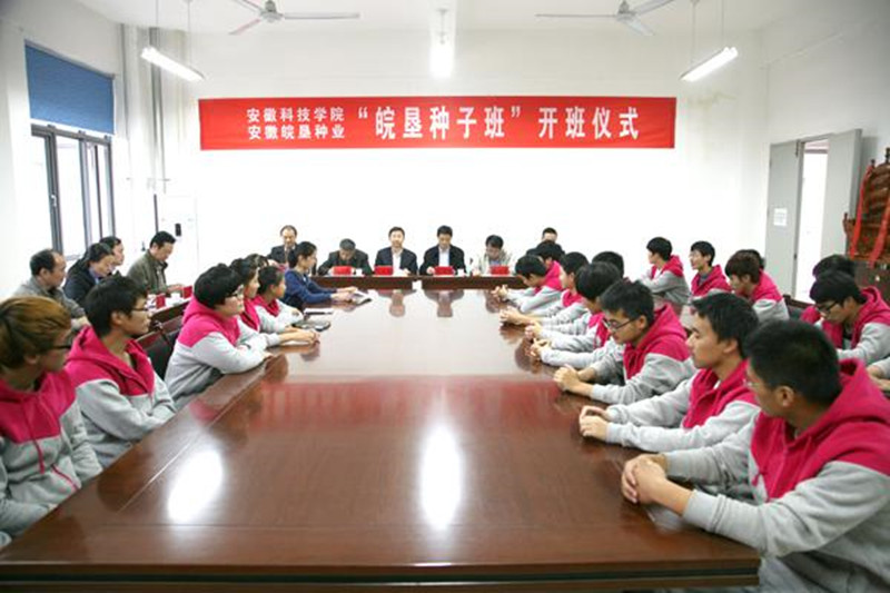 皖垦种子班是皖垦种业与安徽科技学院深化企校合作的又一成果。根据双方共同研定了人才培养方案,从2013年种子专业统招生中选拔30人独立建班,学制四年,实行双班主任制双导师制双考核制双奖助学金制四个新的管理体制,旨在培养热心献身农业、理论实践结合、注重在实践中创新的一批优秀农作物育种人才,助力皖垦种业安徽农垦集团。