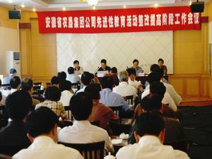 省先进性教育活动第三十督导组组长谢道文到会并 讲了话。机关全体党员和农垦在肥企业分管党务工 作及党务工作人员参加了会议。图为整改提高阶段 工作会议会场。(鲍广云)