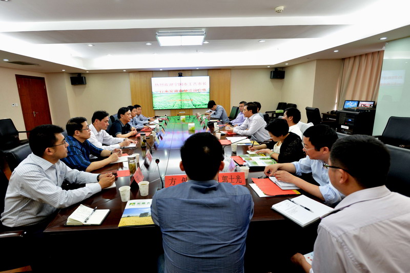 56下午,宁国市长王普率市人大、政府及国土局、规划局、国投公司相关负责人来安徽农垦洽谈垦地合作事宜。省农垦集团党委书记、董事长田文俊会见了王普一行,副总经理程军、陈仁虎及集团公司相关部门、通和房地产公司负责人参加洽谈。