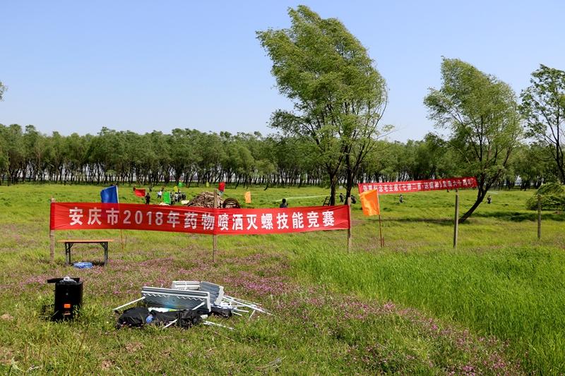 为纪念毛泽东主席《七律二首·送瘟神》发表60周年,提高灭螺操作技能,确保血防工作质量,410,安庆市及大观区血防部门、皖河农场联合举办了2018年药物喷洒灭螺技能竞赛。省血防所副所长张世清、安庆市卫计委副主任施勤、农场党委副书记徐英晴等领导同志到场观摩指导,来自市属各县区的8支代表队参赛。