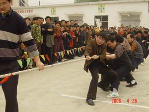 为了活跃节日气氛,陶治职工情操,强化职工集体 观念、团结协作精神,促进安徽农垦集团建设,4月28 日上午,大圹圩农场工会组织了一场别开生面的男 子、女子队拔河比赛。